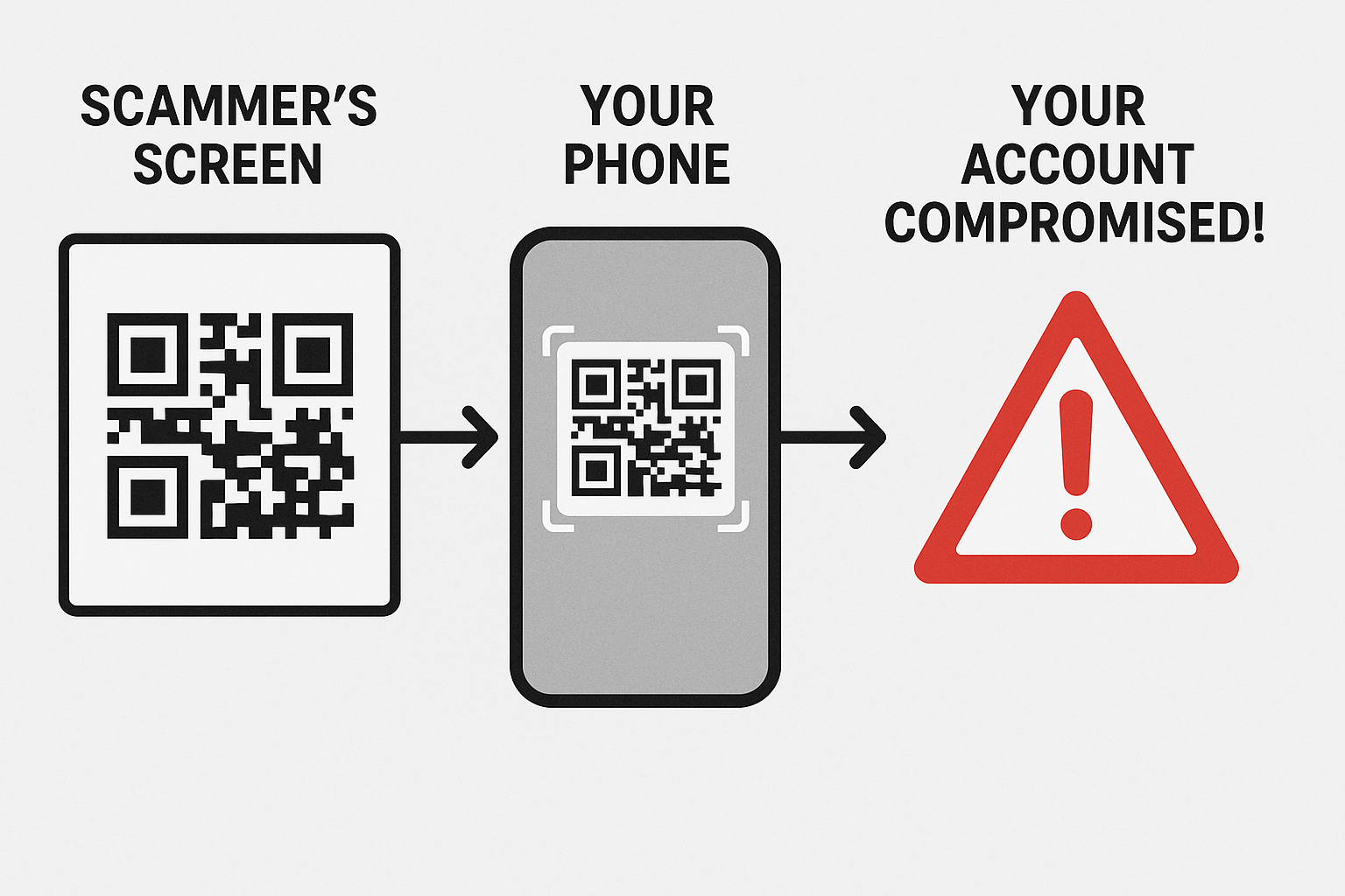 A scammer has their own Discord login screen open. They screenshot their QR code and send it to you. When you scan it and approve the login, you aren't logging yourself in—you are authorizing **their computer** to log into **your account**. They gain instant access and can take it over.